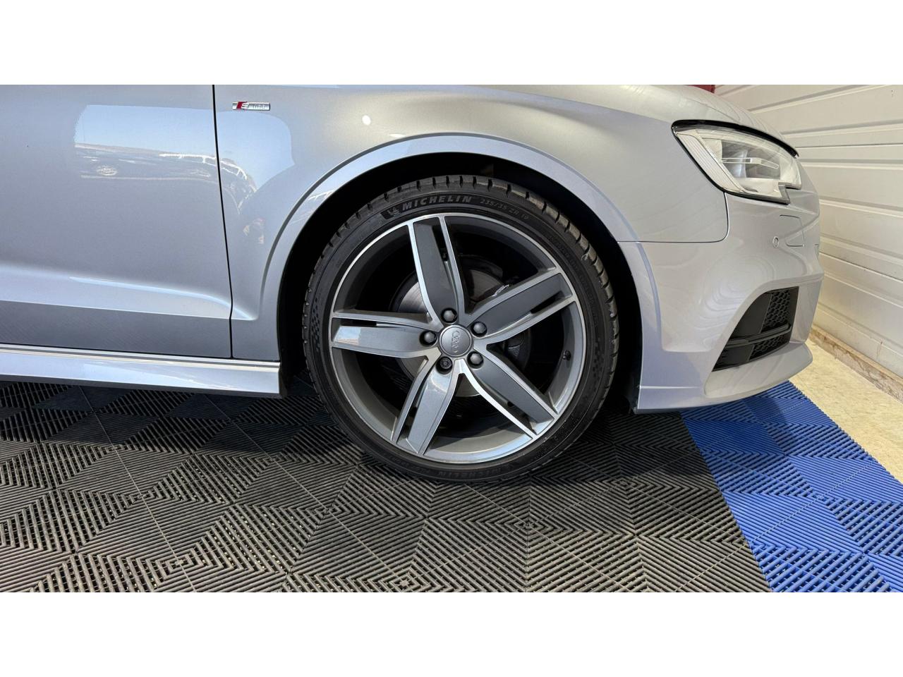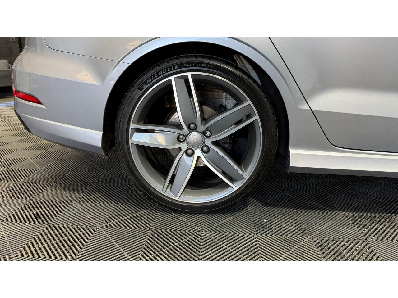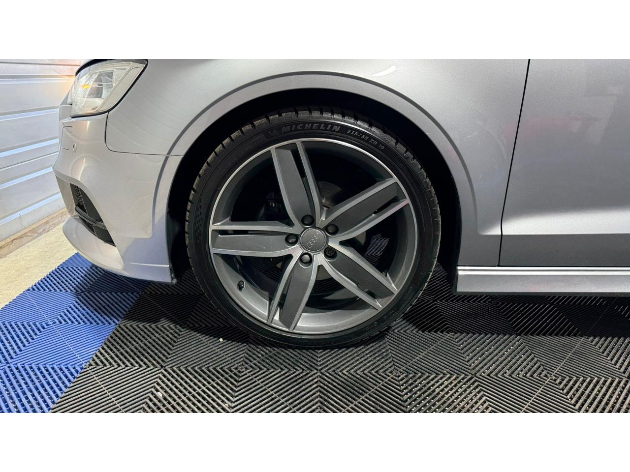- Jantes en aluminium coulé Audi Sport en style aile à 5 bras, style titane brillant, dimensions 8J x 19 avec pneus 235/35 R19